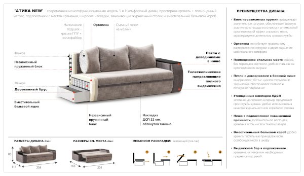 Диван Атика (Империал) продается в интернет-магазине v-tomske-mebel-online.ru по цене 69 362 руб. Есть доставка по Томску и Томской области. Возможность подъема на этаж и сборки уточняйте у менеджера по телефону 8(800)505-27-11.